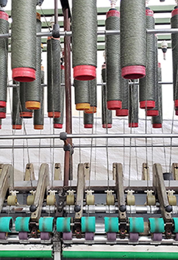 The pigment ink we use can go straight into a finishing process with almost no water consumption. Other printing methods require washing (high water consumption) and steaming (high electrical consumption) before finishing. Printing digitally reduces water usage by up to 60% and electrical usage by up to 30%.