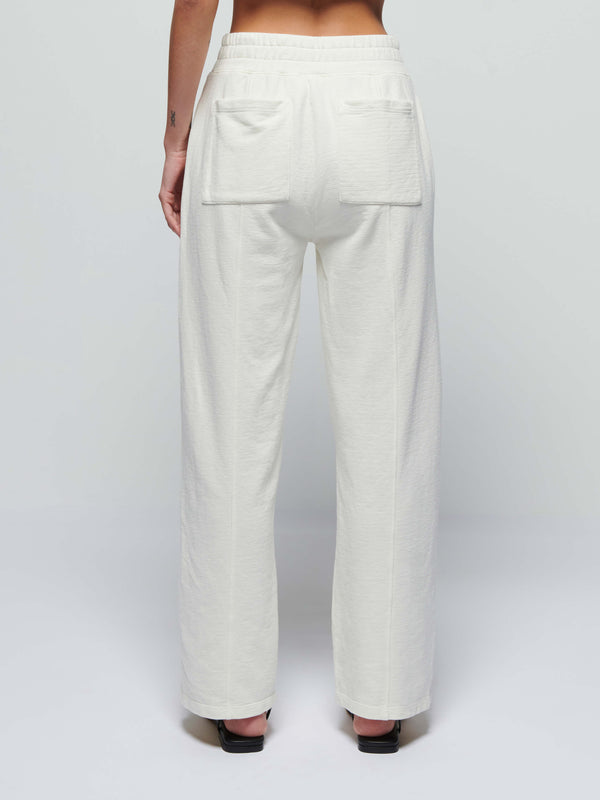 Proof that casual can look chic (all summer long). These chic sweatpants have an easy, elasticized waistband and seamed details with front slits on the hem. Feels effortless, looks ready for whatever the day brings you. Make it a set with the Lenon top. This one comes in Porcelain.