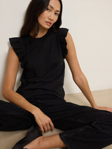 This is not your average jet black, ruffle tank: the ruffles are lightly fused, which adds a little extra kick and makes your waist look smaller. You're welcome.
