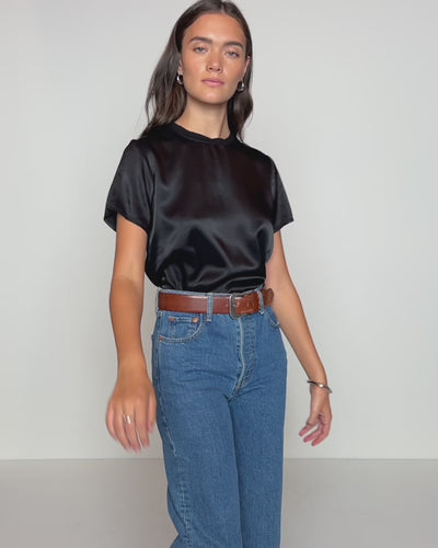 The dressed up version of your favorite laid-back, slightly cropped tee with a contrasting rib neckband.